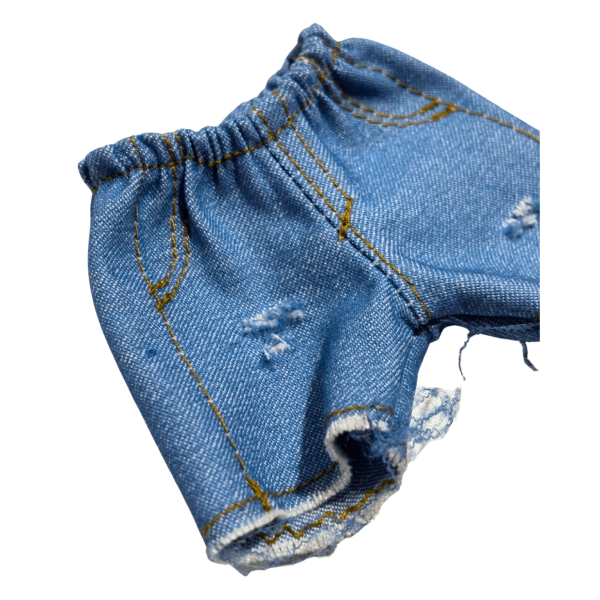 Incluye remerita estampada y short de jean con detalles realistas como roturas y flecos✨