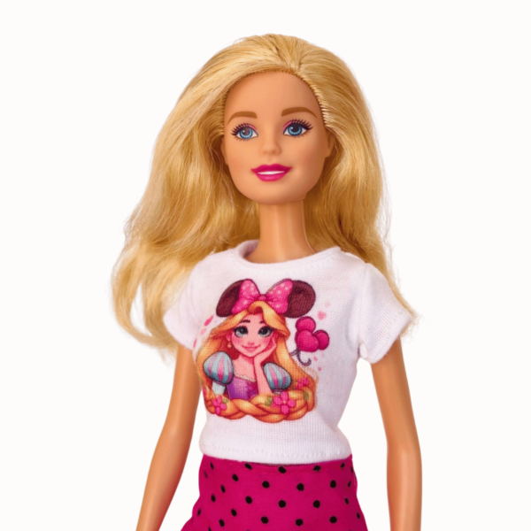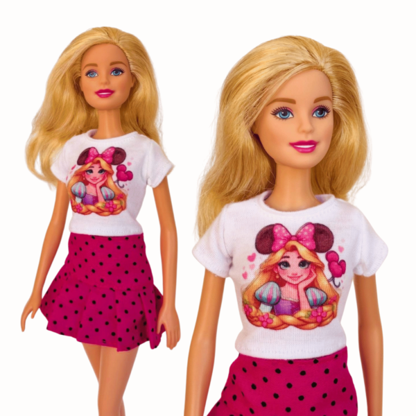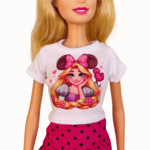 💕 Una remerita para que vistan a sus muñecas con su princesa favorita de Disney🍯combinada con pollera a lunares