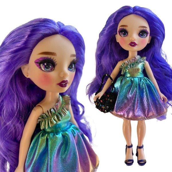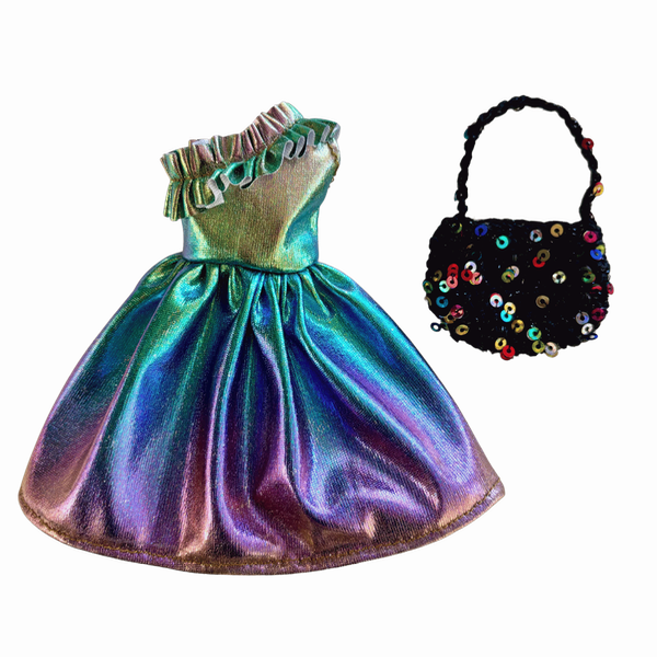 💖 La tela tornasolada brilla con diferentes colores y tiene detalle de volado en el hombro, el Look de fiesta perfecto para sus muñecas